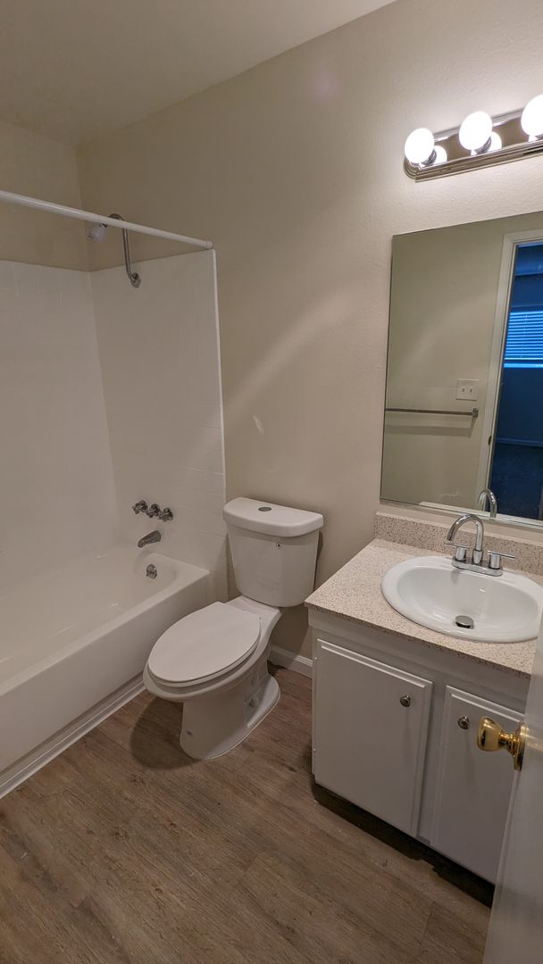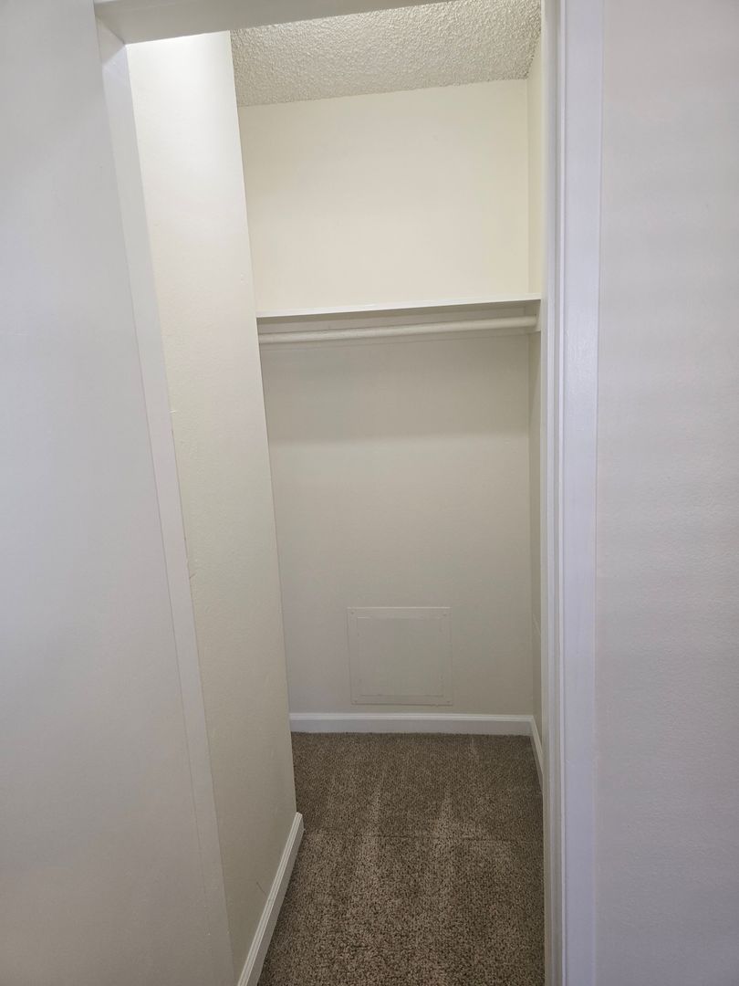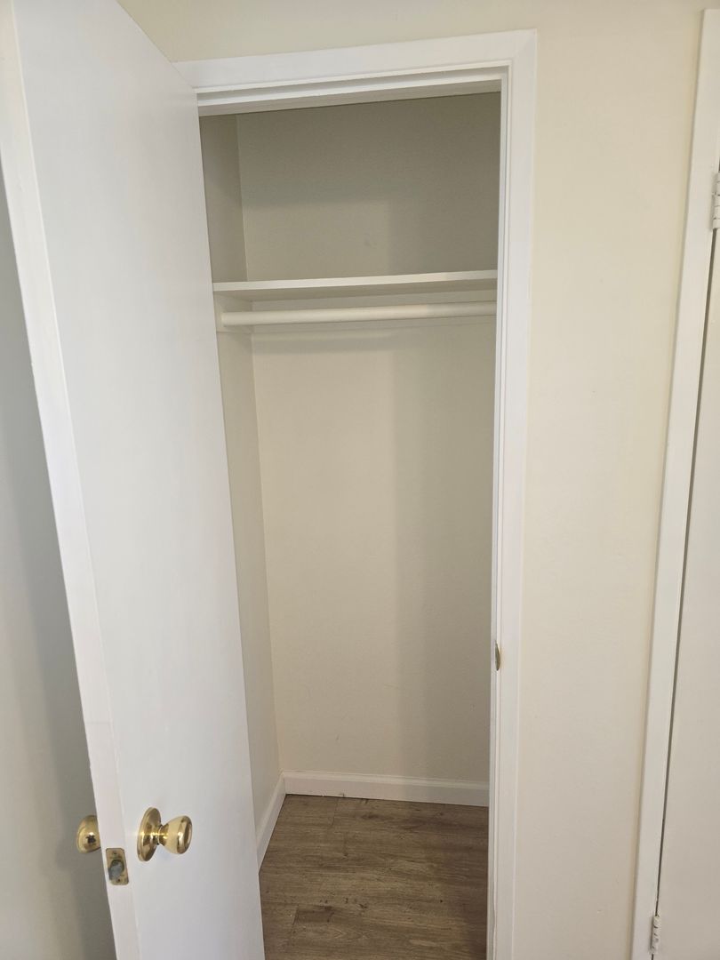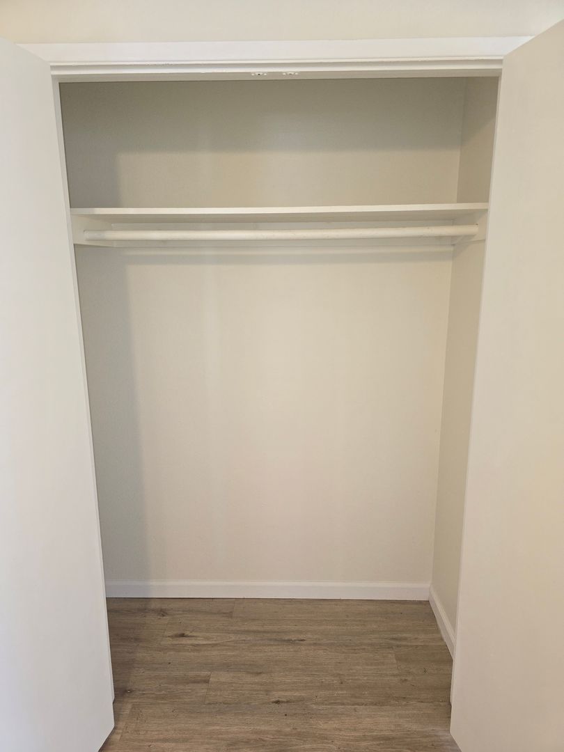 - Spacious Living/Dining Area: Bright and airy with ample natural light and large windows, two storage closets and a ceiling fan, hardwood style flooring.