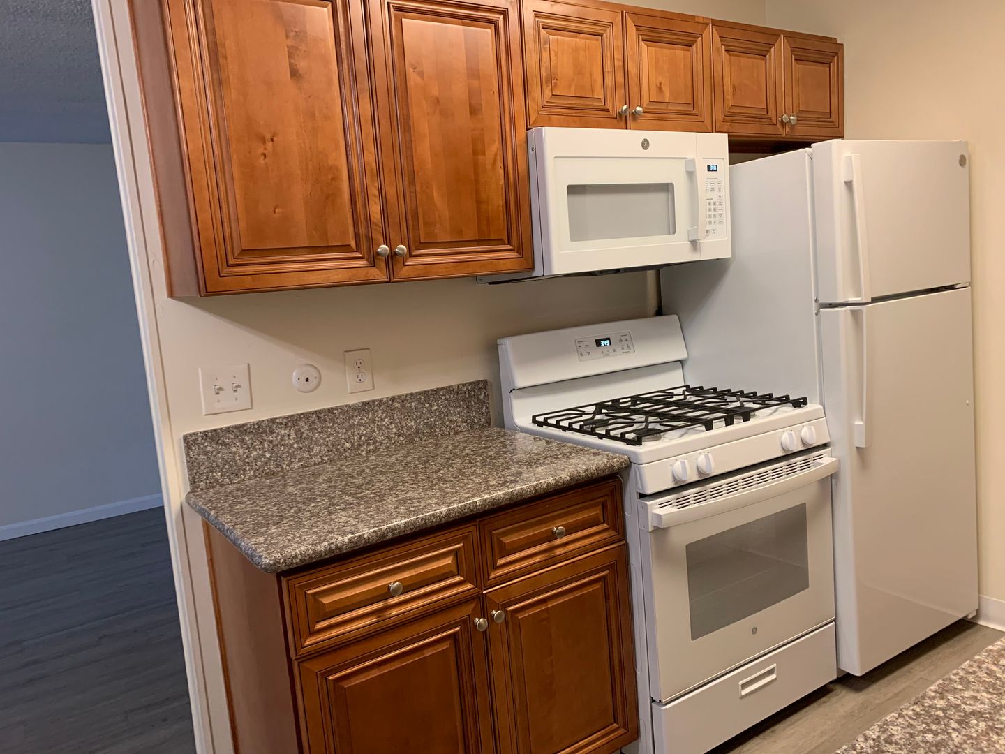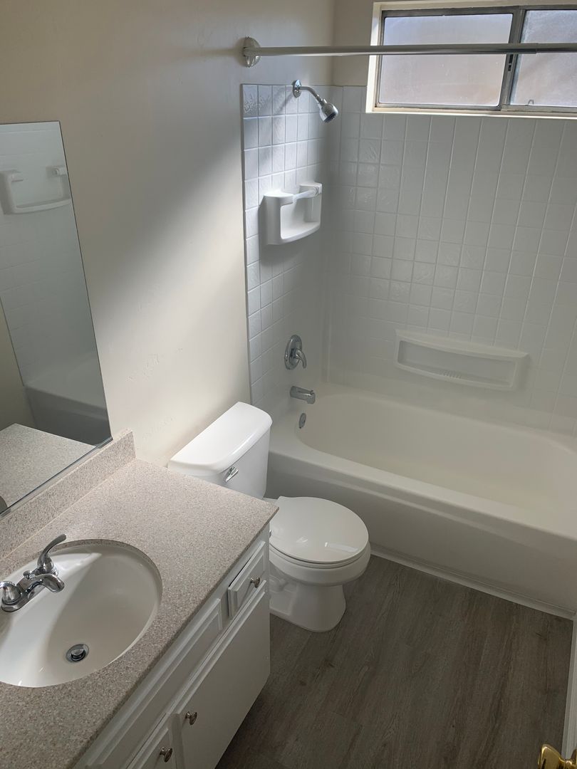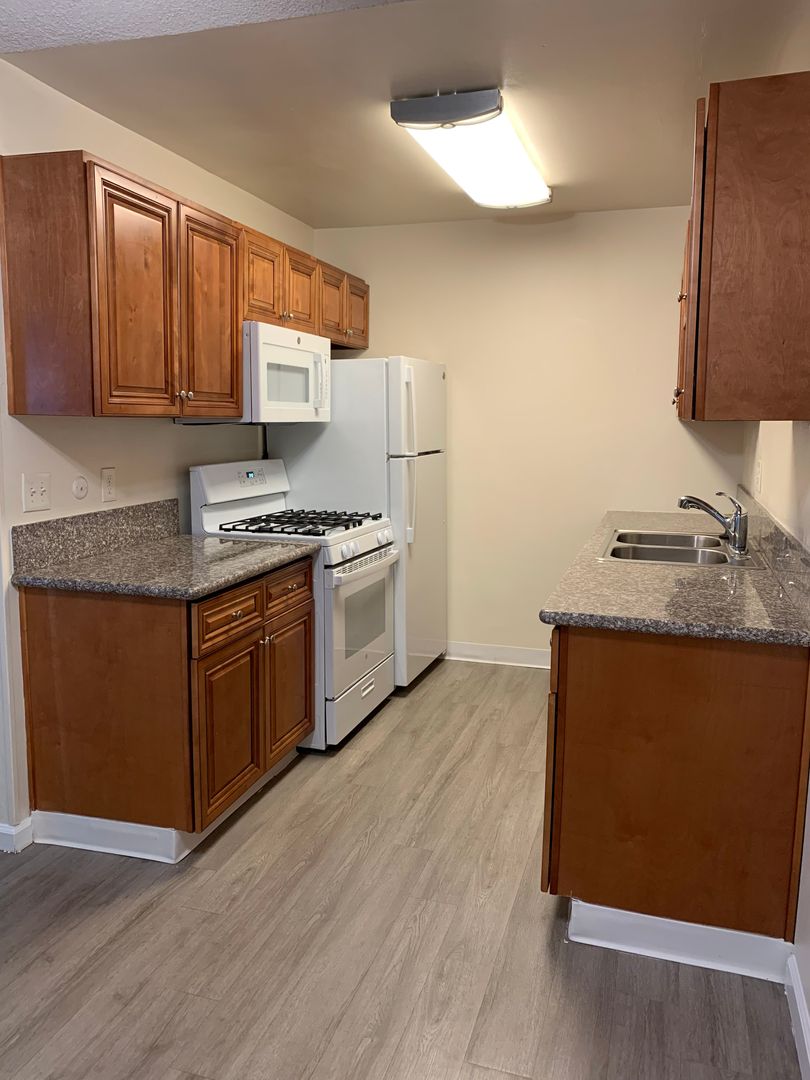 Renting a fully updated 1 bedroom apartment in Pacific Beach at 2025 Diamond St. Apartment has new cabinets, granite countertops, gas stove and plank flooring throughout!